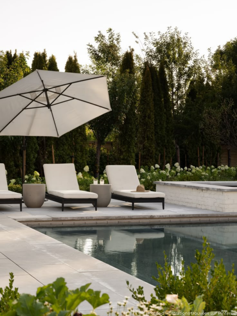 Pour profiter de ton extérieur même en plein soleil, pense à installer des solutions d’ombrage comme des parasols, voiles d’ombrage ou pergolas. Ils offrent une protection contre les rayons UV et apportent une touche esthétique à l’ensemble.